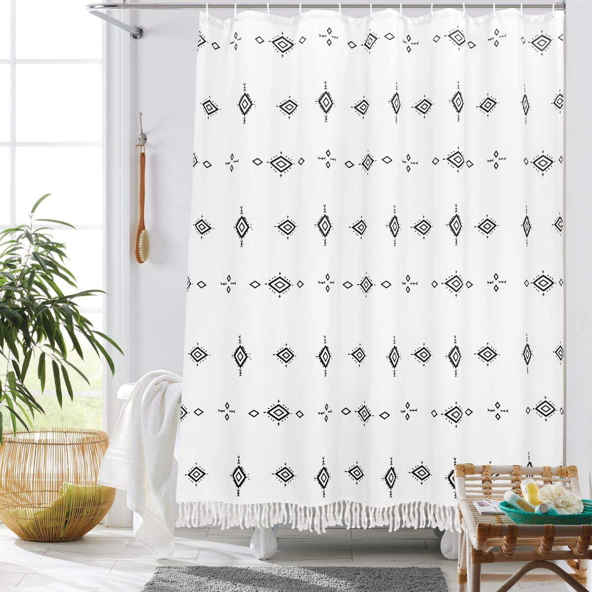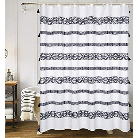 Trimmed with pompoms along the edges and only at uo. 72 inches wide x 72.5 inches long (measurement includes 1.5 inch tassel). Shop 27 top tassel shower curtain and earn cash back all in one place. Add to basket share to : Yokii tassel fabric shower curtain, black and cream stripe print boho polyester bath curtain set with hooks, decorative spa.